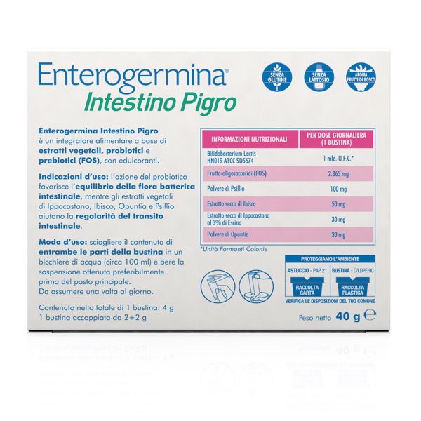Le persone sotto controllo medico, le donne in gravidanza o che allattano al seno devono chiedere consiglio al proprio medico prima di assumere Enterogermina Intestino Pigro.